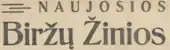 The Naujosios Biržų žinios (literally: New Biržai news) was the weekly (first few months - bi-weekly) county newspaper on matters of society, politics and literature.[1] It was published in the Biržai county.[1] It was published from 1941 to 1944.[1] A total of 131 issues were published.[2] It was the continuation of the Biržų žinios that was published from 1922 to 1933.[1] From 16 January 1943 to 8 July 1944, the newspaper was published under the old title Biržų žinios.[2]