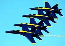 The objective of Navy Aviation Support is to help facilitate and coordinate the distribution of active-duty U.S. naval aircraft and aviation resources to support public demonstration events across the United States. Aviation support includes performances by the Blue Angels, the Leap Frogs, East and West Coast Tactical Demonstration Teams, aircraft static displays and flyovers. The Navy Office of Community Outreach determines the eligibility of each event based upon applicable Department of Defense(DoD) and Department of the Navy regulations. A current listing of all eligible aviation events can be found on the Navy Office of Community Outreach website.[3][4]