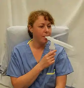 - 1 2 Boe J, Dennis JH, O'Driscoll BR, et al. (July 2001). "European Respiratory Society Guidelines on the use of nebulizers". Eur. Respir. J. 18 (1): 228–42. doi:10.1183/09031936.01.00220001. PMID 11510796.