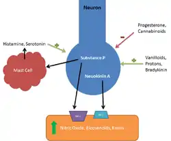 - 1 2 3 Paige, Christopher J.; et al. (2006). "Tachykinins In The Immune System". Current Drug Targets. 7 (8): 1011–1020. doi:10.2174/138945006778019363. PMID 16918329.