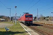 The Neustrelitz–Warnemünde Railway (German: Neustrelitz-Warnemünder Eisenbahn) is a railway line in the North German state of Mecklenburg-Vorpommern. Most of the line is a double-tracked, electrified main line and runs for almost 130 kilometres from Neustrelitz to Warnemünde. It is also known in German as the Lloydbahn (Lloyd Railway), referring to the Deutsch-Nordischer Lloyd company, which built the line and operated it in its early years after its opening in 1886.