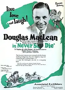 Never Say Die is a 1924 American silent comedy film directed by George Crone and starring Douglas MacLean, Lillian Rich, and Helen Ferguson.[1][2] The film is based on the play of the same name by American playwright William H. Post.