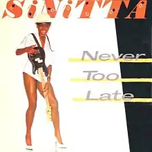 "Never Too Late" is a song by American singer Sinitta. The song was written and produced by James George Hargreaves and A. Ajai-Ajagbe. It was released in 1983 as the non-album single. "Never Too Late" has a smashing break and exists too as a white label press bearing Sinitta's full name, a release containing a shorter version. Jellybean Benitez was hired for doing the Special Extended U.S Mix. No music video was made for this song