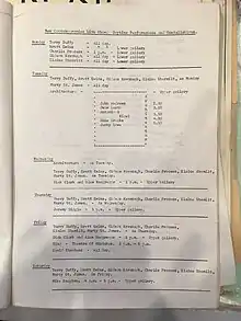 Scan of typewritten document showing a running order of live performances at Acme Gallery