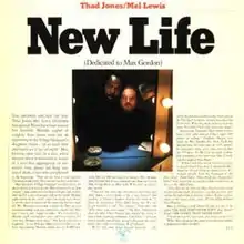 New Life (Dedicated to Max Gordon) is a 1976 big band jazz album recorded by the Thad Jones/Mel Lewis Jazz Orchestra and released on the A&M/Horizon Records label. The album was nominated for a 1976 Grammy award in the Best Jazz Performance by a Big Band category.[2]