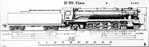 In 1943, approval was given for the New South Wales Government Railways Workshops to build 25 freight locomotives. The design was a modified version of the 57 class. The main alterations were the use of a rack and pinion valve gear[1] in lieu of the Gresley 2:1 conjugated valve gear for the middle cylinder and the use of smaller cylinders to enable the locomotives to run to on the Main North line to Broadmeadow, a route which had a tighter loading gauge. They also used a Woodard divided drive of twin coupling rods between the second and third driving wheels. A valance was fitted over the valve gear on the front platform.[2] Similarly to the earlier D57 class and the later AD60 class, the 58 class were fitted with a mechanical stoker to feed the large firebox