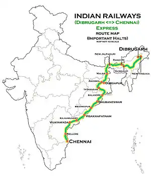 New Tinsukia–Chennai Tambaram Express Route map
