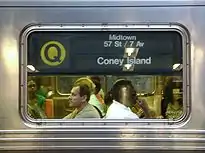 During this period, the TA did not change sign rolls on BMT equipment (the D-types and R16s) that carried numbers, so that on the Brighton Line, the R27-operated locals were signed QB or QT but the D-type-operated expresses continued to carry the number 1.