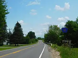 NY 287 began at an intersection with NY 283 southeast of Alexandria Bay in Browns Corners, a hamlet within the town of Alexandria. It headed southeast from the small community and gradually curved to the northeast as it proceeded through large, cultivated fields in an isolated portion of Jefferson County. West of Redwood, NY 287 had only four intersections with other highways, two of which were for a local road that began and ended at the state highway.[4][5]
