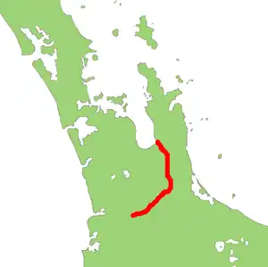 State Highway 26 (SH 26) is a state highway in the North Island of New Zealand, linking Hamilton with the Coromandel Peninsula. It starts from the Waikato Expressway at Ruakura on the eastern outskirts of Hamilton and travels 96 kilometres to Kopu, 6 kilometres south of Thames. It passes through Morrinsville, Te Aroha and Paeroa.