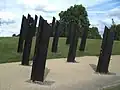 The girders project from the ground at an angle towards the south. The angle is intended to resemble the posture of warriors performing a haka, or a cricket bat playing a defensive stroke, or the barrel of a shouldered gun. The standards have different heights, with the ends cut off at a diagonal so they resemble cross-like grave markers from a distance.