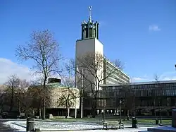 Newcastle Civic Centre is a municipal building in the Haymarket area of Newcastle upon Tyne, England.[1] Designed by George Kenyon,[2] the centre was built for Newcastle City Council in 1967 and formally opened by King Olav V of Norway on 14 November 1968.[3] It is a listed building with Grade II* status[4] and is the joint-eighth tallest building in the city, standing at a total of 200 feet (61 m).[5]