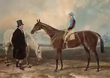 Newminster was a bay colt bred by William Orde and foaled in 1848.[1] He was sired by Touchstone, who won the St. Leger Stakes as a three-year-old, before winning both the Doncaster Cup and Ascot Gold Cup twice as an older horse. He was also a successful stallion, becoming British champion sire four times.[2] Touchstone sired many Classic winners including the Derby winners Cotherstone, Orlando and Surplice.[3] Newminster's dam was Beeswing, a daughter of Doctor Syntax. Beeswing was a successful racemare who raced for many years. Her wins included six Newcastle Gold Cups, four Doncaster Cups and one Ascot Gold Cup. Beeswing also foaled the 2000 Guineas winner Nunnykirk, who was also sired by Touchstone.[4] Newminster was purchased as a yearling by Anthony Nichol and put into training with John Scott.[5]