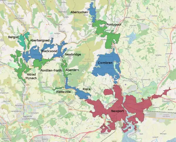 - ↑ UK Census (2011). "Local Area Report – Cwmbran Built-up area sub division (W38000140)". Nomis. Office for National Statistics. Retrieved 2 August 2019.