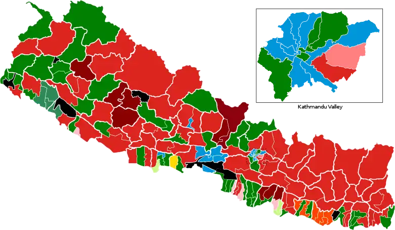 CPN (UML) won 78 seats at the election and was the second largest party in the House of Representatives. The party however got the most votes in the party list proportional system.[62]