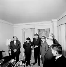 Nhiek Tioulong (Khmer: ញឹក ជូឡុង; 23 August 1908 – 9 June 1996) was a Cambodian army officer, politician, and actor who served as Acting Prime Minister of Cambodia from 13 February 1962 to 6 August 1962. [1] He was a prominent politician during the tenure of Prince Norodom Sihanouk. He also served as Minister for Foreign Affairs in the 1960s and repeatedly as governor of provinces in Cambodia. In 1969 he received the honorary title Samdech Chakrey Konhchara Thipadei (Khmer: សម្ដេចចក្រីកុញ្ចរាធិបតី) by Prince Norodom Sihanouk.