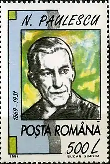 He was an associate of ultranationalist, Professor A. C. Cuza, and wrote extensively for the latter's newspaper, Apărarea Națională ('The National Defense'). Paulescu influenced Cuza to incorporate religion into his doctrine. He also heavily influenced the leader of the fascist Iron Guard organisation, Corneliu Zelea Codreanu. Codreanu extensively quoted Paulescu, and acknowledged the powerful impact that Paulescu's ideas had on his own development.[11] Paulescu was the first to link together Romanian antisemitism, Christianity and ultranationalism.[12] In 1922, Paulescu co-founded the "National Christian Union" (which evolved into the LANC in 1923), together with A. C. Cuza. That same year, the NCU adopted the swastika as its official symbol.[13]