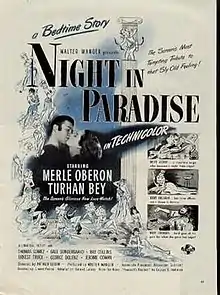 Night in Paradise is a 1946 American Technicolor fantasy comedy film directed by Arthur Lubin and starring Merle Oberon, Gale Sondergaard and Turhan Bey. It was produced by Walter Wanger for distribution by Universal Pictures.