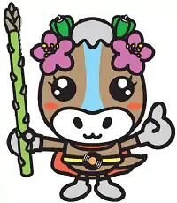 Niikappu's mascot is Nikappun (にいかっぷん). She is a superhero horse who wears earrings made of azalea and green bell peppers and a cape. Her weapon is an asparagus. Her heart-shape nose is a sign of peace. She watches over Niikappu everyday.[2]