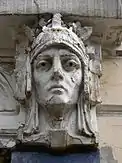 His use of sculpture has been linked to the legacy of Stroganov Institute school that focused on elaborate facade decorations.[3] However, none of contemporary architects used sculpture so frequently and on such scale as Zherikhov. His best known work, a small 4-story apartment building on the corner of Plotnikov and Maly Mogiltsevsky Lane, completed in 1907, features a band of 40 life-sized figures arranged in groups of two or three in explicitly erotic settings.[4] Three of the satyrs resemble Leo Tolstoy, Alexander Pushkin and Nikolay Gogol.[4] The name of the sculptor has been lost; perhaps it was Leeb Sinayev, author of Pushkin Museum friezes, or one of his disciples.[3] Tourist guides say that the building once housed a high-class brothel,[4] but the statement is refuted by historians as an urban legend.[3]