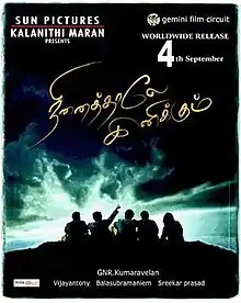 Ninaithale Inikkum was released on 4 September 2009 and was a commercial success at the box office. The film was produced by Gemini Film Circuit and distributed by Sun Pictures. This title was taken from a 1979 Tamil film.