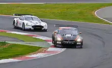 The GT-R Nismo GT3 made its Super GT debut in 2012 at the Okayama International Circuit, with drivers Katsumasa Chiyo and Yuhi Sekiguchi. The car won its first race in the fourth round of the season at Sportsland Sugo, and also scored a podium finish in the following round at Suzuka. It was 4th in the final standings.[26] A couple of difficult seasons followed, in 2013 the car failed to score a single podium finish, in 2014 it only managed to win a race.[27][28] But in the 2013 JAF Grand Prix, team NDDP Racing, with driver Daiki Sasaki won the first race, starting from pole position. In the second race, the car only managed to finish 7th, and ended up being the runner-up of the 2013 JAF Grand Prix. It set the fastest laps in both races, as Nismo Athlete Global Team and NDDP Racing set the fastest laps of the first and second races respectively.[29] The car bounced back in the 2015 season, team Gainer No.10 car, driven by André Couto won the championship, scoring 2 race wins and 4 podium finishes. Including the results of team NDDP Racing, the car finished the season with a total of 4 race wins and 7 podium finishes.[30]