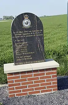 Memorial dedicated at former RAF Elsham Wolds to those lost on operations from no. 103 Squadron and 576 Squadron RAF