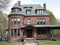 The houses, which are located on the corner of Claremont Street and Woodland Street in the Main South area of Worcester, have been regarded as some of the earliest and finest examples of Queen Anne architecture in the city.[3] They were built in 1878 and added to the National Register of Historic Places in 1980. 16 Claremont Street is home to the George Perkins Marsh Institute of Clark University. The Marsh Institute studies the human dimensions of environmental change and coupled natural and human systems.