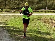 In Norway, "skogsløp med skyting" (literally shooting with cross-country running) is a summer variant of the Nordic field biathlon where contenders compete in running and shooting with fullbore rifles. Competitions are held within Det frivillige Skyttervesen.[1] The length of the running part is usually between 2 and 3 kilometers, and during the race shooting is done 2 to 3 times. Contrary to the winter variant, the firearms are not carried during the running part, but are instead stored in racks close to the shooting area. Field-Run competitions are arranged in either the "normal" or "sprint" format. The Norwegian normal program championship is arranged during the large yearly event Landsskytterstevnet, while the Norwegian sprint championship is held later in the autumn. Contrary to the other exercises in the organization, Nordic shooting with cross-country running and Nordic field biathlon competitors are divided into male and female competitive divisions.[2]