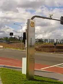 The North-West T-way has 30 stations, spaced approximately every 800 metres. Stations feature closed circuit television, real-time information screens, emergency help points, audio announcements and extensive landscaping.[12]