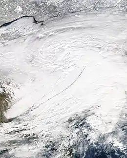 ![]() Satellite image of the blizzard making its way across the Atlantic states. | |
