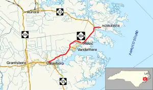 North Carolina Highway 304 (NC 304) is a primary state highway in the U.S. state of North Carolina. The two-lane coastal highway is 15.2-mile-long (24.5 km) and connects Bayboro with communities in northeastern Pamlico County.