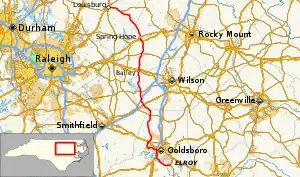 - ↑ Google (June 17, 2013). "NC 581 Connector - Goldsboro" (Map). Google Maps. Google. Retrieved June 17, 2013.