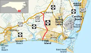 North Carolina Highway 906 (NC 906) is a primary state highway in the U.S. state of North Carolina. It serves as an access and evacuation route for Oak Island.