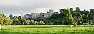Northanger Abbey was shot on location in Ireland from late August 2006.[22][23] The Independent's Sarah Shannon stated that ITV had filmed in the country "largely thanks to the generous tax incentives offered by the republic's government."[9] Filming lasted for five weeks and the drama was shot on Super 16 mm film.[11] Twenty-first century Dublin streets doubled for nineteenth century Bath, the setting for the novel.[5] Shannon thought some viewers might be annoyed with this and Thompson commented, "But isn't that shot of the Royal Crescent in Bath a bit of a cliché? What we've done is create our own Bath."[9] Lismore Castle in County Waterford was chosen as Northanger Abbey, home of the Tilney family.[22] Higginsbrook House, near Trim, County Meath, served as the exterior to the Morland family's home.[24] The house was later used in Becoming Jane, a film about Austen's early life.[24] Other shooting locations included Dublin Castle, Ardbraccan House and Charleville Castle.[22] Jones told Paul Byrne of the Evening Herald that she enjoyed shooting in Ireland as she got to see a lot of the country.[22]