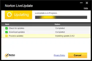 Norton LiveUpdate is a utility developed by Symantec Corporation that downloads and installs security updates (such as spyware, firewall, or antivirus signature files) and software patches.[1] LiveUpdate can only apply updates for a particular version of Norton; it cannot however upgrade a version of Norton to a later version (for example Norton Internet Security 2006 to 2009). To upgrade the product to the latest version, one would have to go to a separate website.[2]