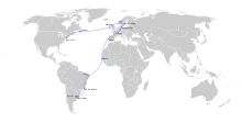 On 2 March 1938, the board of DNL decided to sell Valkyrien to Chargeurs Reunis and abandon plans for intercontinental traffic. Instead, negotiations started with Aer Rianta of Ireland, who were cooperating with Pan Am on the transatlantic route; DNL, DDL, Aero and Aerotransport planned to start a route from Foynes via Stavanger, Oslo and Stockholm to Moscow.[15] However, Pan Am decided to move the route to the Azores when it commenced in 1939 and DNL's Shannon-plans were terminated. Following this, the Nordic airlines started negotiating the possibility of cooperating on their own transatlantic route via Iceland and Newfoundland. In 1940, a delegation was sent to the United States, where it negotiated the necessary permissions from the American authorities and purchase rights for aircraft. After the break-out of World War II, the United States had become more interested in a northern transatlantic route, so it could reach the neutral Scandinavian countries.[16]