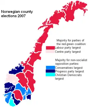 - ↑ Official county election results from the Norwegian government website