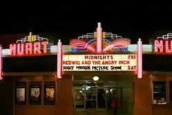 The Nuart is on Santa Monica Boulevard, one block from the 405 Freeway.[1] It hosts a weekly Saturday midnight movie showing of The Rocky Horror Picture Show featuring Sins O' The Flesh.[2]