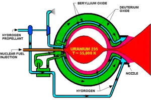 Nuclear gas core closed cycle rocket engine diagram, nuclear "light bulb"