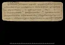 Nyingma traditional histories consider their teachings to trace back to the first Buddha Samantabhadra (Güntu Sangpo) and Indian mahasiddhas such as Garab Dorjé, Śrī Siṃha and Jñānasūtra.[2] Traditional sources trace the origin of the Nyingma order in Tibet to figures associated with the initial introduction of Buddhism in the 8th century, such as Padmasambhava, Yeshe Tsogyal, Vimalamitra, Vairotsana, Buddhaguhya and Shantaraksita.[3] The Nyingma tradition is also seen having been founded at Samyé, the first monastery in Tibet.[4] Nyingma teachings are also known for having been passed down through networks of lay practitioners or ngagpas (Skt. mantrī).[5]