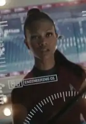 In Star Trek: Strange New Worlds, the character is featured as a Cadet serving on the Enterprise as part of an advanced placement. Played by Celia Rose Gooding. The series reveals Uhura's backstory: she is from Kenya and her parents, both university professors, and brother died when she was younger. At a dinner in Captain Pike's quarters, Uhura admits that she joined Starfleet as a way of honoring her grandmother who was a Starfleet officer that raised her when her parents died, but is unsure about continuing in the service. This draws negative reactions from other members of the crew, including Spock. However, after her exemplary performance on her first away mission, Spock softens his tone and tells her that she will make an excellent officer if she decides to stay. Season 2 she returns to the Enterprise as an Ensign and the Enterprise's communications officer.