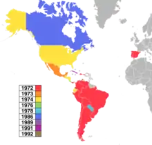 The location of the festival was decided following various criteria. At first it was decided that the winning country would organise and celebrate the contest the next year, but after the victory of Nicaragua in 1977, the country could not host the contest due to the bloody civil war that broke out the next year. In those years, many Latin American countries suffered from political and economical instability. For that reason, from that year on, the host city was decided by a bid process organised by the Iberoamerican Television Organisation.