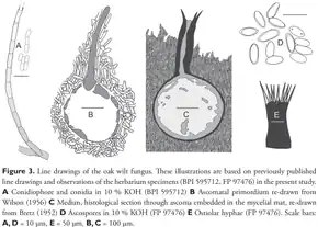 - ↑ According to Species Fungorum, the current name is Ceratocystis fagacearum: "the Ceratocystis fagacearum page". Species Fungorum. Royal Botanic Gardens Kew. Retrieved 16 May 2021.