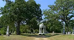 The Oakland Cemetery is a historic cemetery in Dallas, Texas, United States. It originally stood on 180 acres in rural Dallas County 1.5 miles southeast of the county court house when it opened in 1892. Economic problems, court judgements, land sales and acquisitions altered the cemetery to approximately 48 acres by 1969. About 27,000 people have selected Oakland Cemetery as the burial location for themselves and/or their family members. Burials include many prominent politicians, educators, physicians, ministers, business leaders, military service members, ancestors of famous individuals and ordinary citizens. The cemetery has a number of interesting memorials, sculptures and vaults. Mount Auburn pauper cemetery, owned by the city of Dallas, a Dallas county pauper cemetery (Rest Haven), and Opportunity Park, a city of Dallas public park border Oakland Cemetery. A Confederate cemetery, cared for by the city of Dallas Parks Department, is nearby.