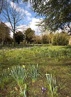 The park was substantially laid out for the Earl of Derby in the 1770s and changes were made for John Burgoyne in the 1790s for the existing villa (built around 1750 for one Thomas Gosling). The fashionable landscape style was employed with trees forming a perimeter screen and placed in artful clumps to suggest a natural landscape. The house, which was partly rebuilt by Robert Taylor (architect) for John Burgoyne in 1775 and by Robert Adam for the 12th Earl of Derby in 1790, was demolished between 1956 and 1960 [1] but the bakehouse, stable block and some outbuildings remain. Carshalton and District History and Archaeology Society carried out an archaeological investigation in July 2009.