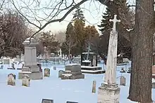 Oakwood Cemetery in Niagara Falls, New York was founded in 1852 after land was donated by Lavinia Porter. It covers over 18 acres (1 km2) and over 19,000 are buried there. The cemetery was listed on the National Register of Historic Places in 1984.[1]