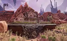 Internally, the game was developed with the mantra of "Myst in space"; comparable to Myst's Ages, the player explores different alien worlds, with means to travel back and forth between them similar to the Linking books.[5] Though they initially wanted to move away from being too Myst-like, treating the title as a spiritual successor, they found that during development they were naturally brought back to structuring the game similar to Myst.[5] The game includes three non-player characters (NPCs), which originally were planned to be rendered and animated within the game's engine, but by March 2015, Cyan decided to return to the use of full-motion video of live actors that will be incorporated into the game, in the same manner as they used in Riven, with Miller considering that it was part of Cyan's legacy to be able to use this approach.[10][7]