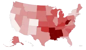 - 1 2 "Prevalence of Self-Reported Obesity Among U.S. Adults by State and Territory". CDC.gov. 2016. Retrieved January 17, 2018.