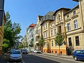 Obrońców Bydgoszczy street is located in downtown district, in Bydgoszcz, Poland. Many of the buildings along this axis are either registered on the Kuyavian-Pomeranian Voivodeship heritage list, or part of a historical ensemble of Eclectic and Art Nouveau architecture in the city.